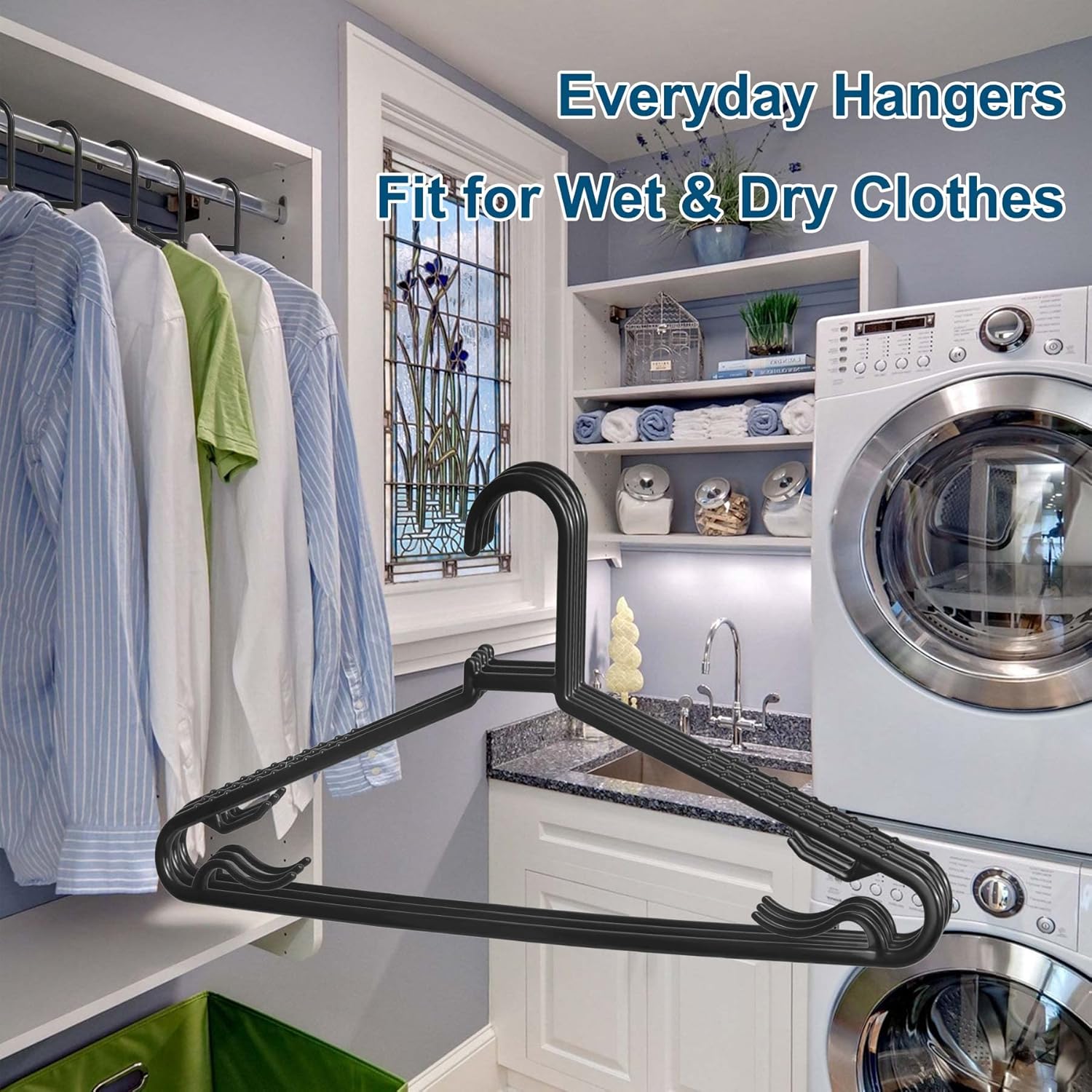 Black Plastic Hangers 50 Pack, Light Weight Durable Clothes Hangers G-Shape Standard Size Non-Slip Coat Hanger Adult Clothes Hangers for Laundry & Everyday Use -Slim & Space Saving