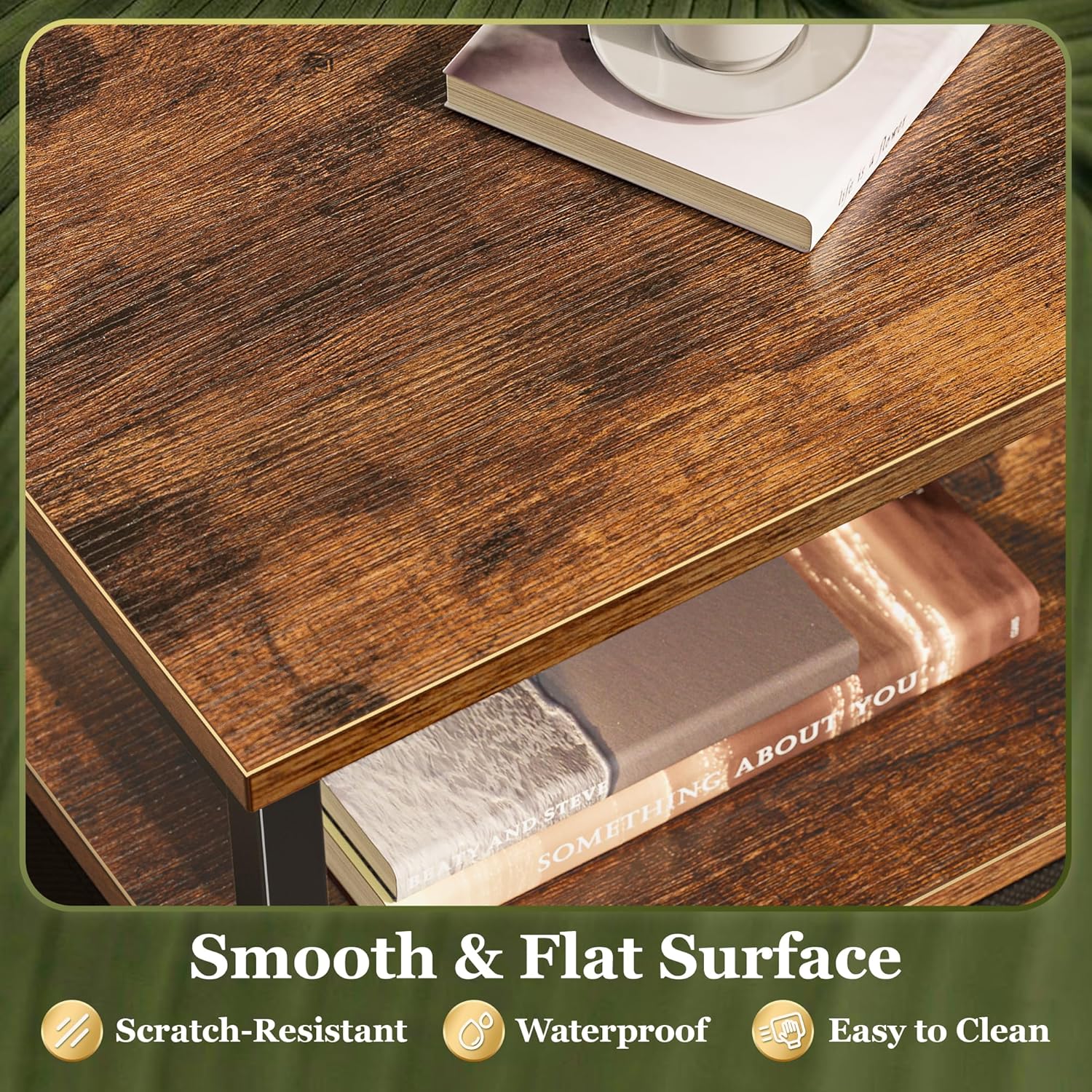 Huuger Night Stand with 2 Drawers, Bed Side Table with Open Shelf, Wooden Top, Nightstand for Bedroom, End Table for Small Space, Fabric Drawer, Rustic Brown