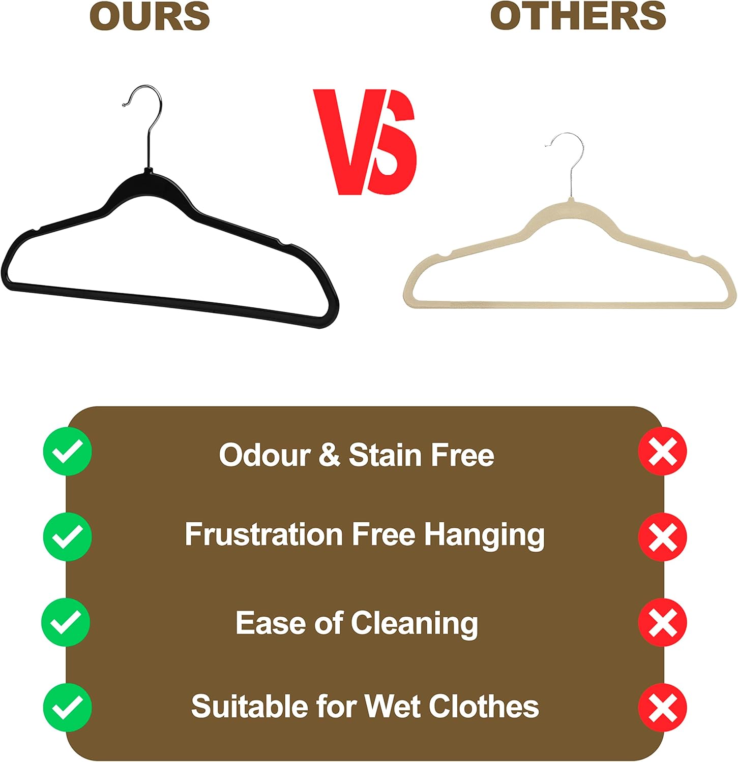Our non-velvet non-flocked plastic hangers are durable and lightweight, perfect for everyday use